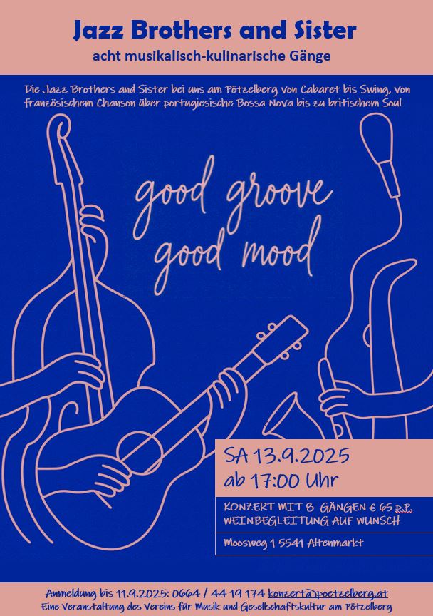 Jazz Brothers and Sister 13 September 2025 , ab 17.00 Uhr Kulturraum Pötzelberg, Moosweg 1 Musik & Konzerte Jazz Konzert mit Joëlle Léandre und Elisabeth Harnik Samstag 17.5.2025 um 19:30 Uhr im Kulturraum Pötzelberg (Bar ab 18:00)